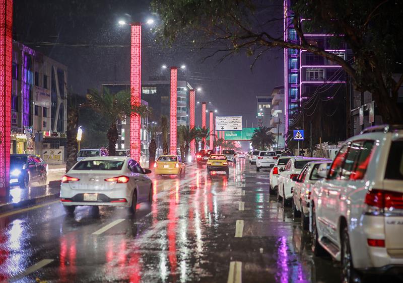 وشهدت العاصمة بغداد، مساء اليوم هطولاً غزيراً للأمطار مع تساقط لحبات البرد (الحالوب).