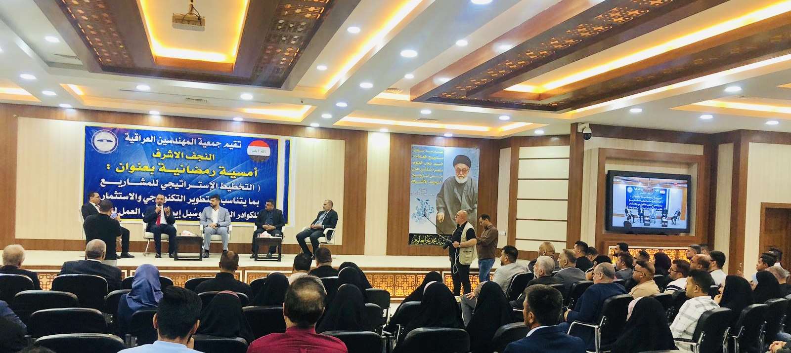 ناقش عدد من النخب الهندسية في النجف الاشرف سبل سبل تطوير التخطيط الاستراتيجي للمشاريع التنموية بما يتناسب مع التطور التكنولوجي والاستثمار في الكوادر الهندسية وسبل إيجاد فرص العمل لها ضمن امسية رمضانية اقامتها الجمعية المهندسين العراقية في النجف الاشرف في قاعة معهد العلميين للدراسات العليا.