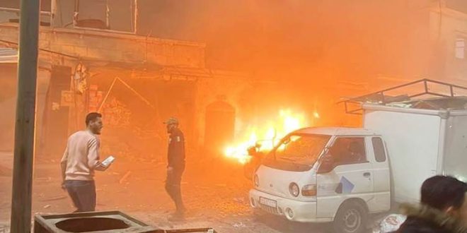 وانفجرت سيارة مفخخة في وقت مبكر من اليوم، وسط سوق شعبي بمنطقة إعزاز بريف حلب الشمالي الخاضعة لسيطرة فصائل مسلحة سورية تابعة لتركيا.