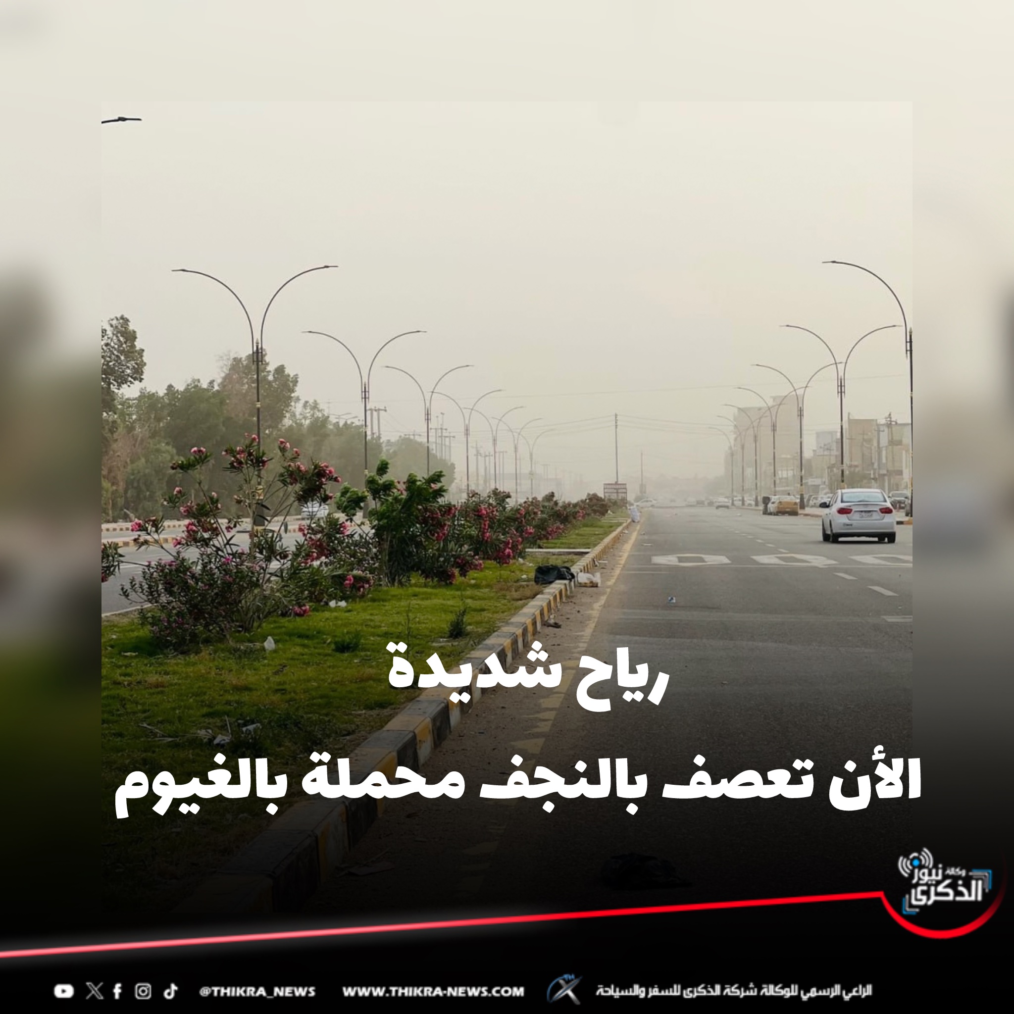 رياح شديدة الأن تعصف بالنجف محملة بالغيوم