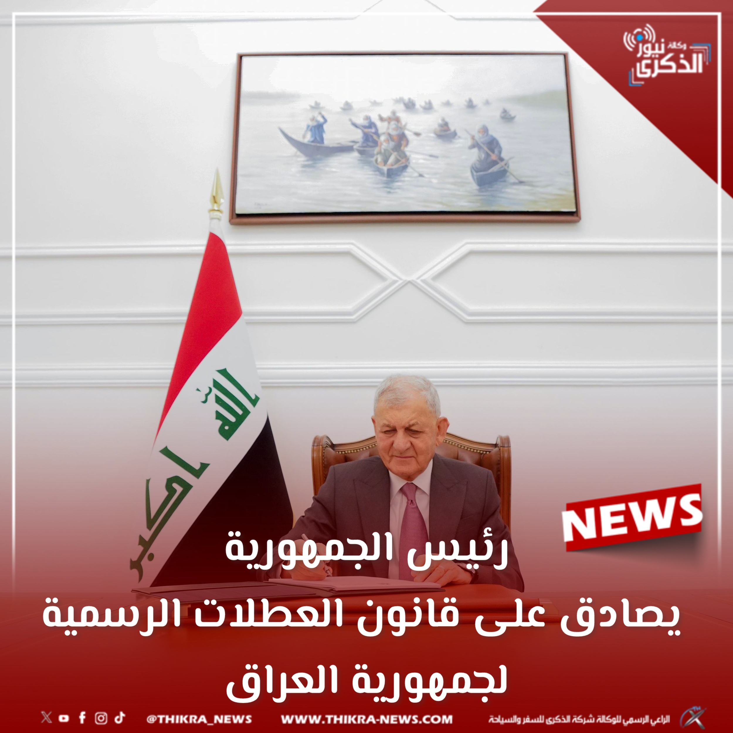 ‏رئيس الجمهورية يصادق على قانون العطلات الرسمية لجمهورية العراق