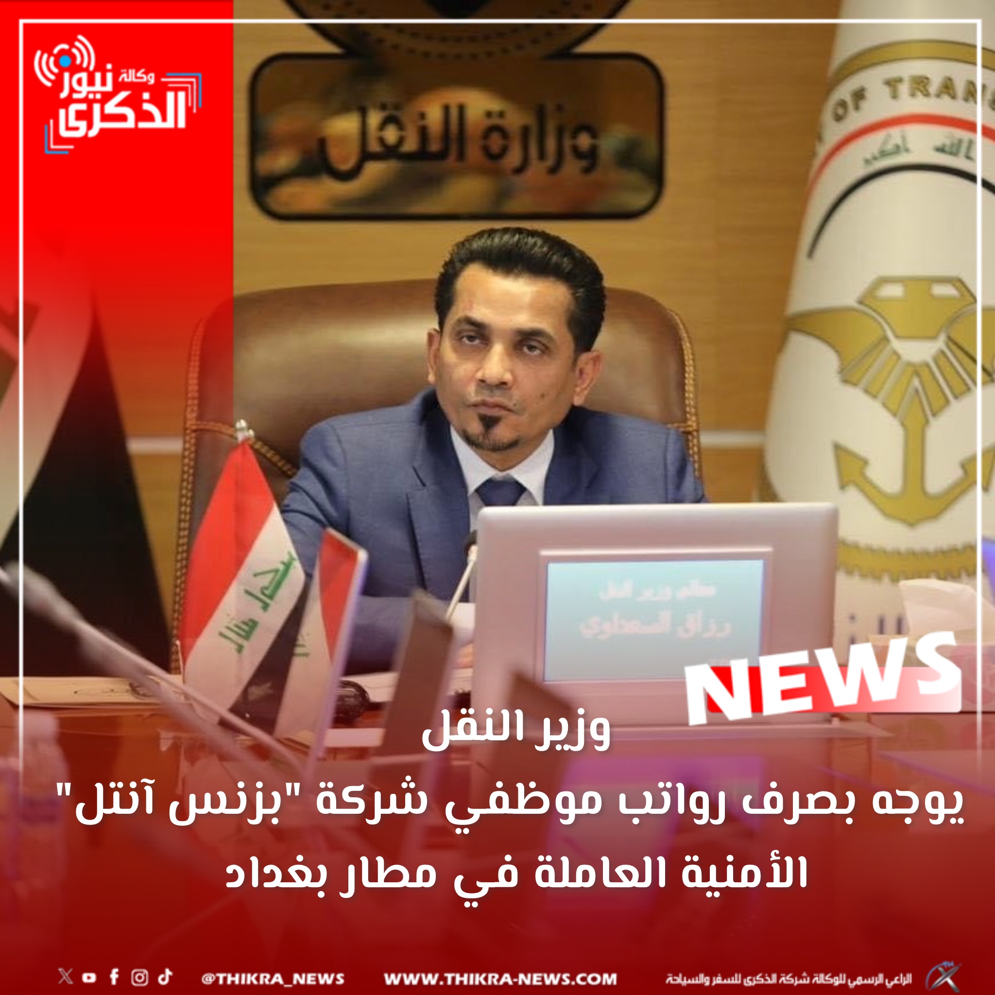 وزير النقل يوجه بصرف رواتب موظفي شركة “بزنس آنتل” الأمنية العاملة في مطار بغداد