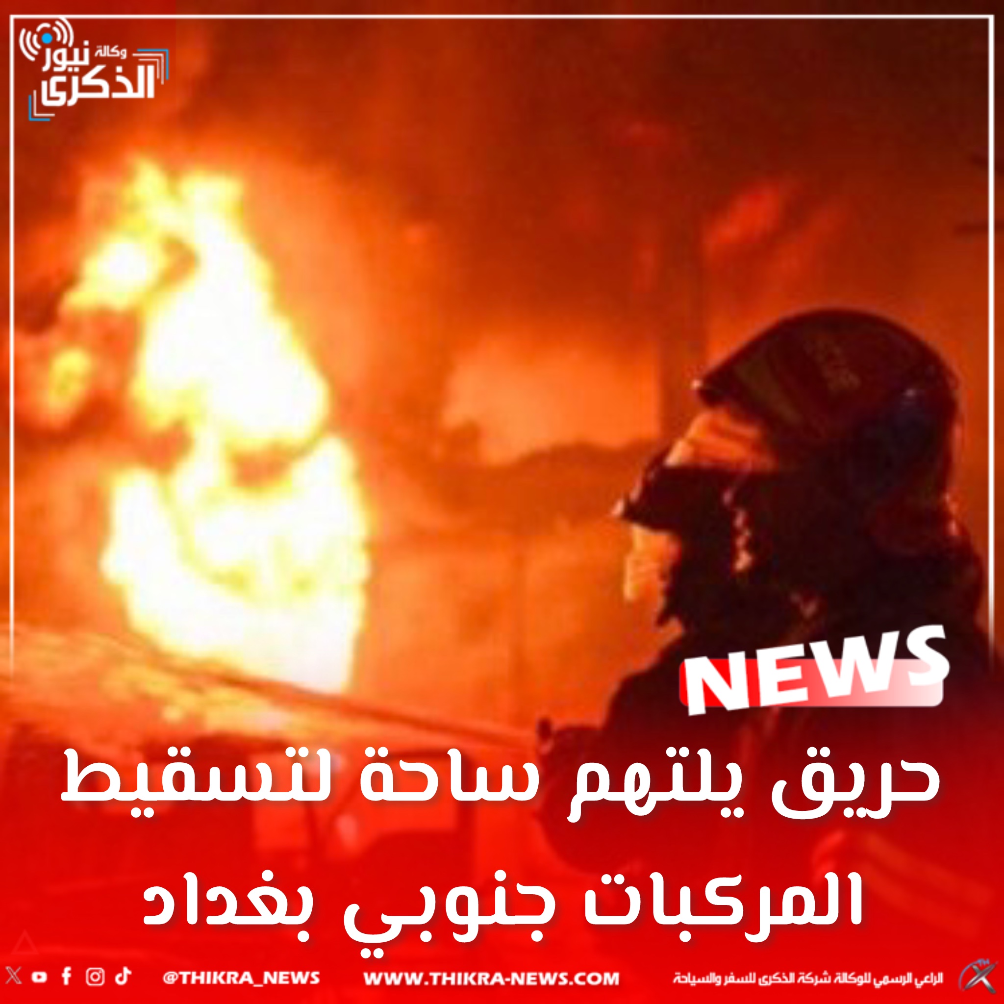 حريق يلتهم ساحة لتسقيط المركبات جنوبي بغداد