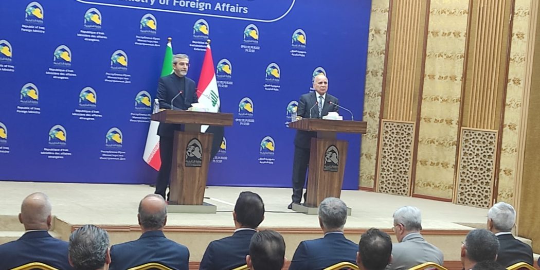 وقال وزير الخارجية في مؤتمر صحفي مشترك مع وزير الخارجية الإيراني بالوكالة عل باقر كني إننا “سعداء بمباحثات اليوم مع وزير خارجية إيران”، مبينا أن “المباحثات” تطرقت إلى وقف إطلاق النار والموقف العراقي واضح بهذا الشأن”.