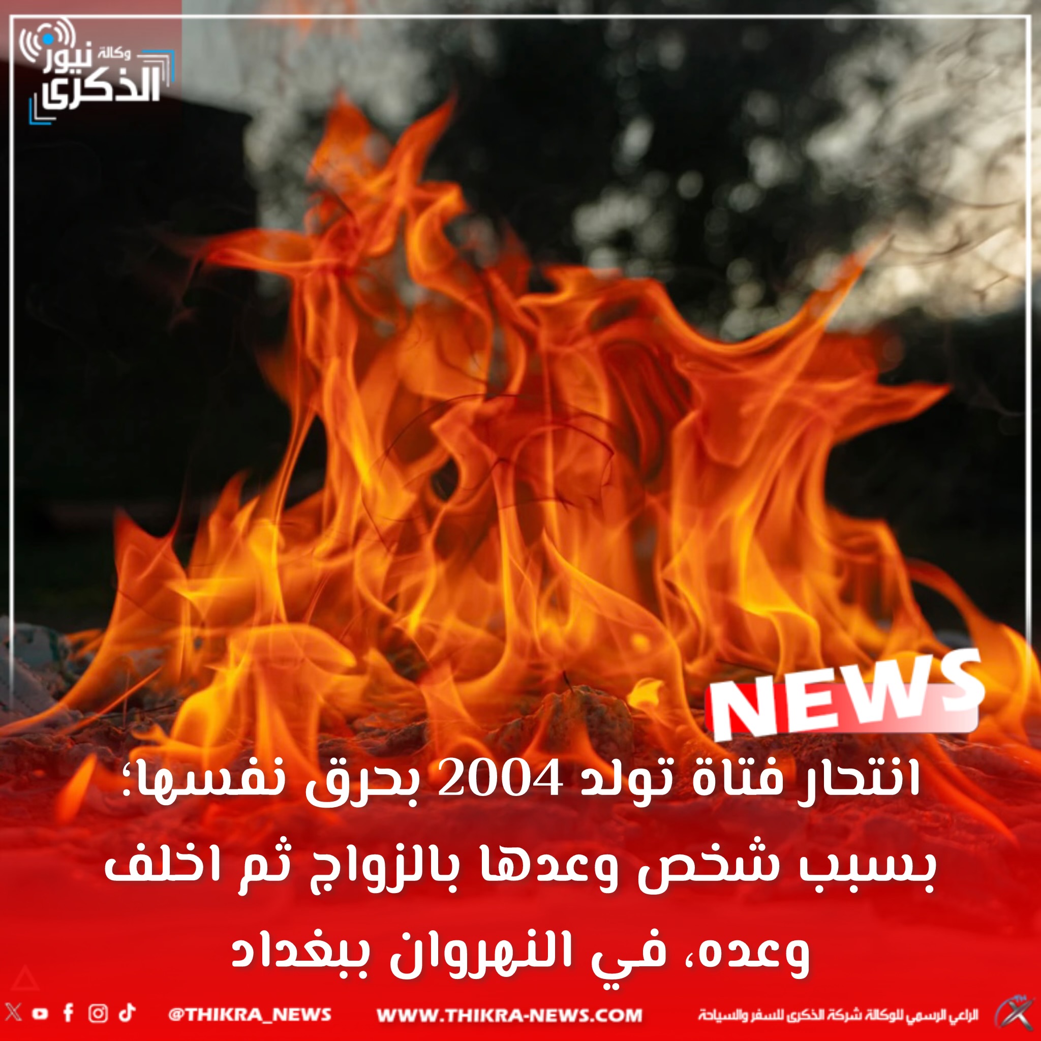 انتحار فتاة تولد 2004 بحرق نفسها؛ بسبب شخص وعدها بالزواج ثم اخلف وعده، في النهروان ببغداد