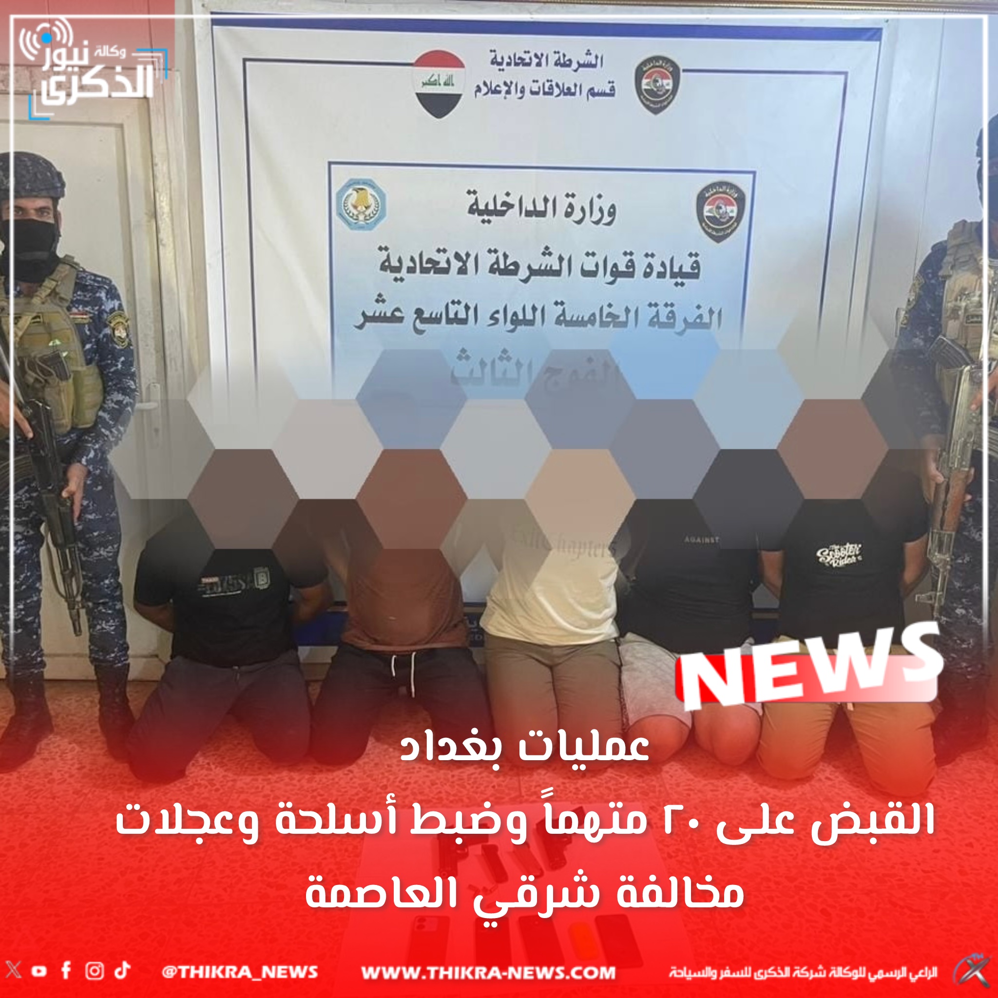 عمليات بغداد: القبض على ٢٠ متهماً وضبط أسلحة وعجلات مخالفة شرقي العاصمة