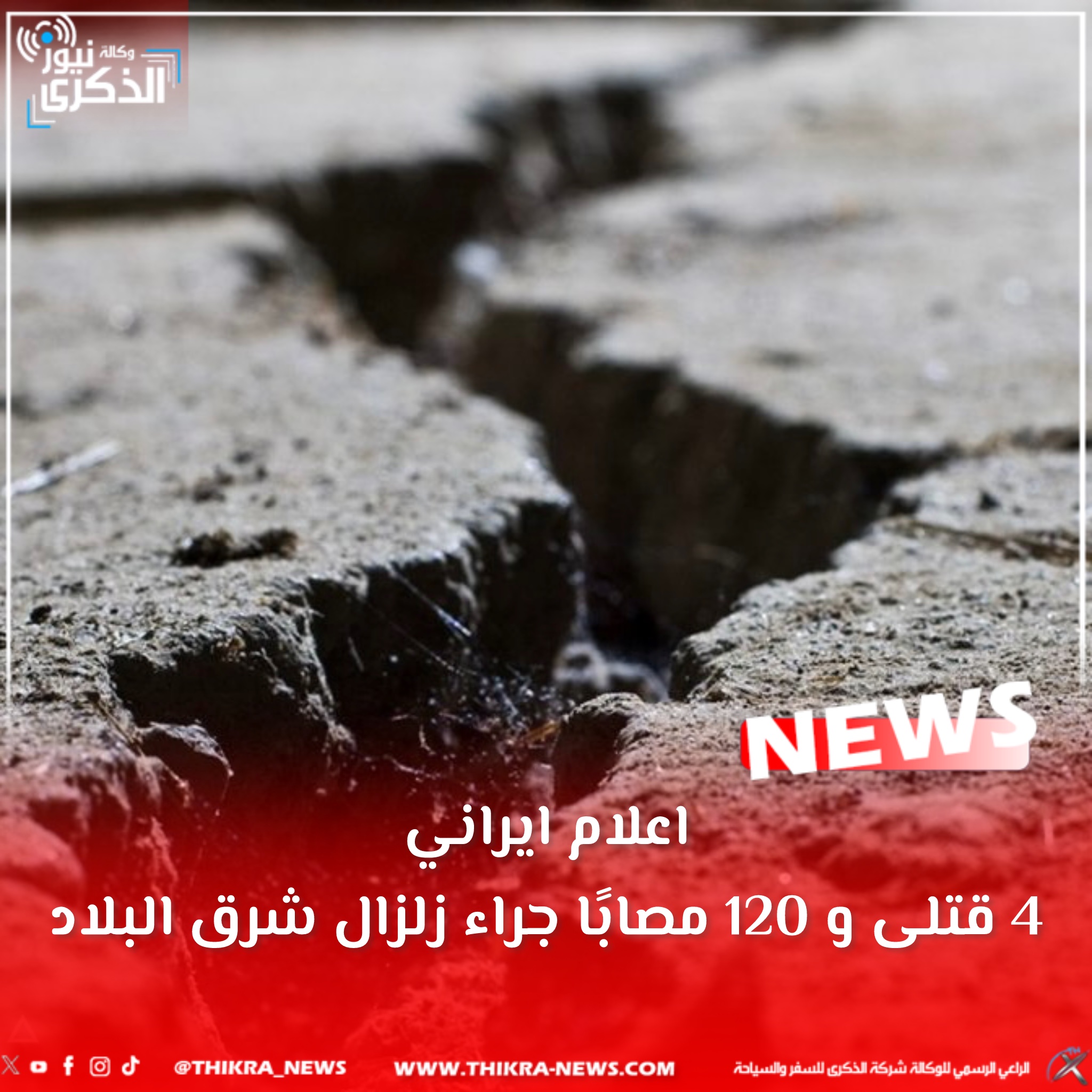اعلام ايراني: 4 قتلى و 120 مصابًا جراء زلزال شرق البلاد