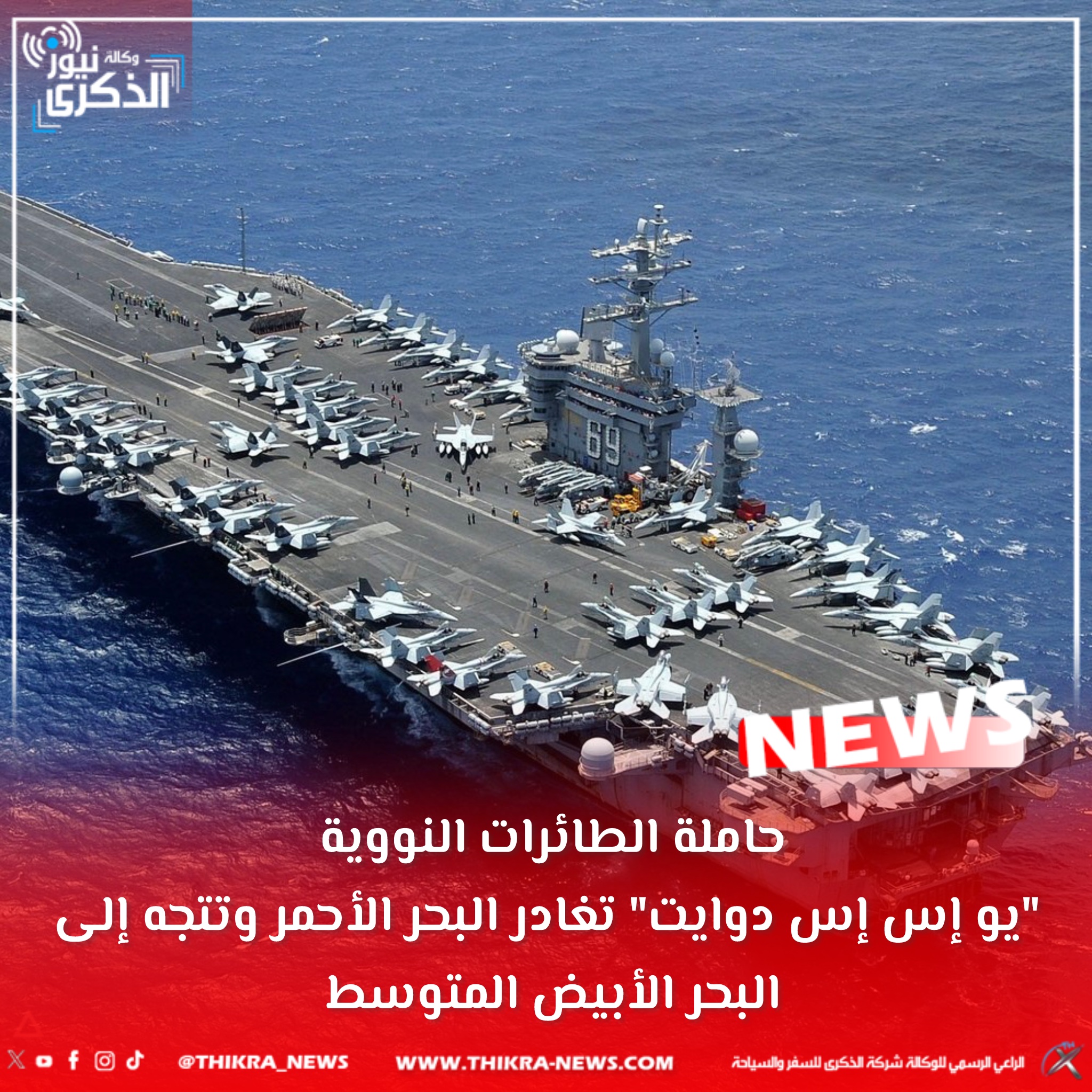 حاملة الطائرات النووية “يو إس إس دوايت” تغادر البحر الأحمر وتتجه إلى البحر الأبيض المتوسط