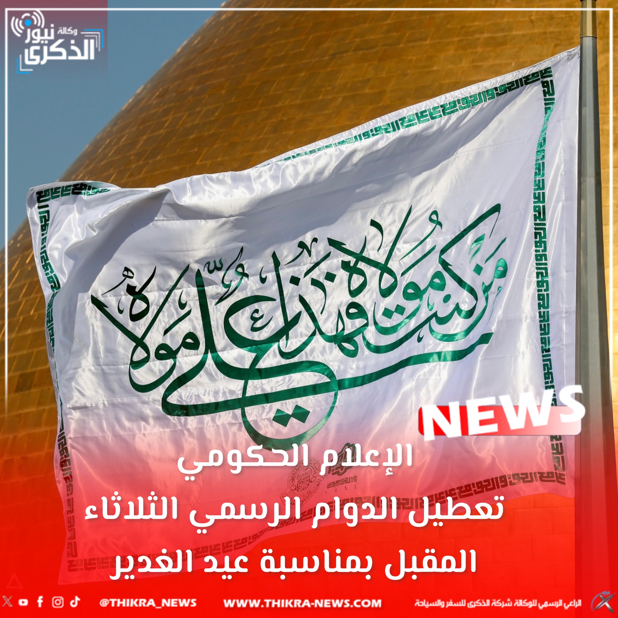 الإعلام الحكومي: تعطيل الدوام الرسمي الثلاثاء المقبل بمناسبة عيد الغدير