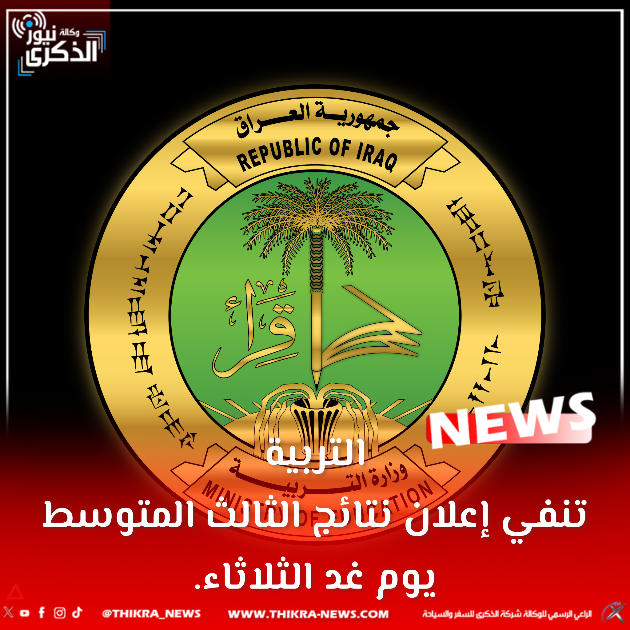 التربية تنفي إعلان نتائج الثالث المتوسط يوم غد الثلاثاء.