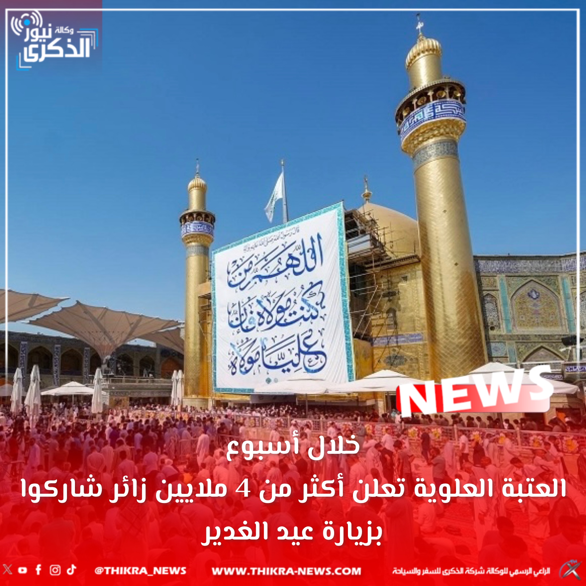 خلال أسبوع.. العتبة العلوية تعلن أكثر من 4 ملايين زائر شاركوا بزيارة عيد الغدير