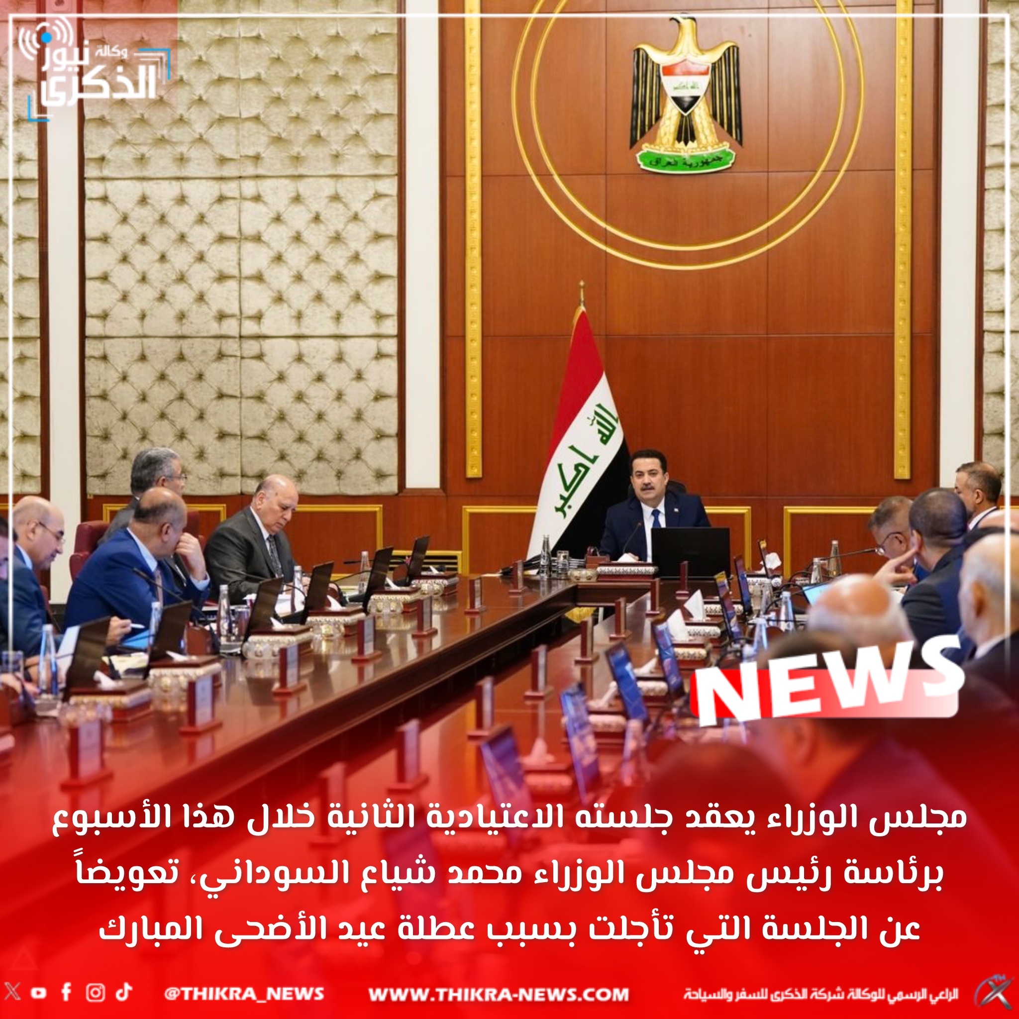 🟠 مجلس الوزراء يعقد جلسته الاعتيادية الثانية خلال هذا الأسبوع برئاسة رئيس مجلس الوزراء محمد شياع السوداني، تعويضاً عن الجلسة التي تأجلت بسبب عطلة عيد الأضحى المبارك