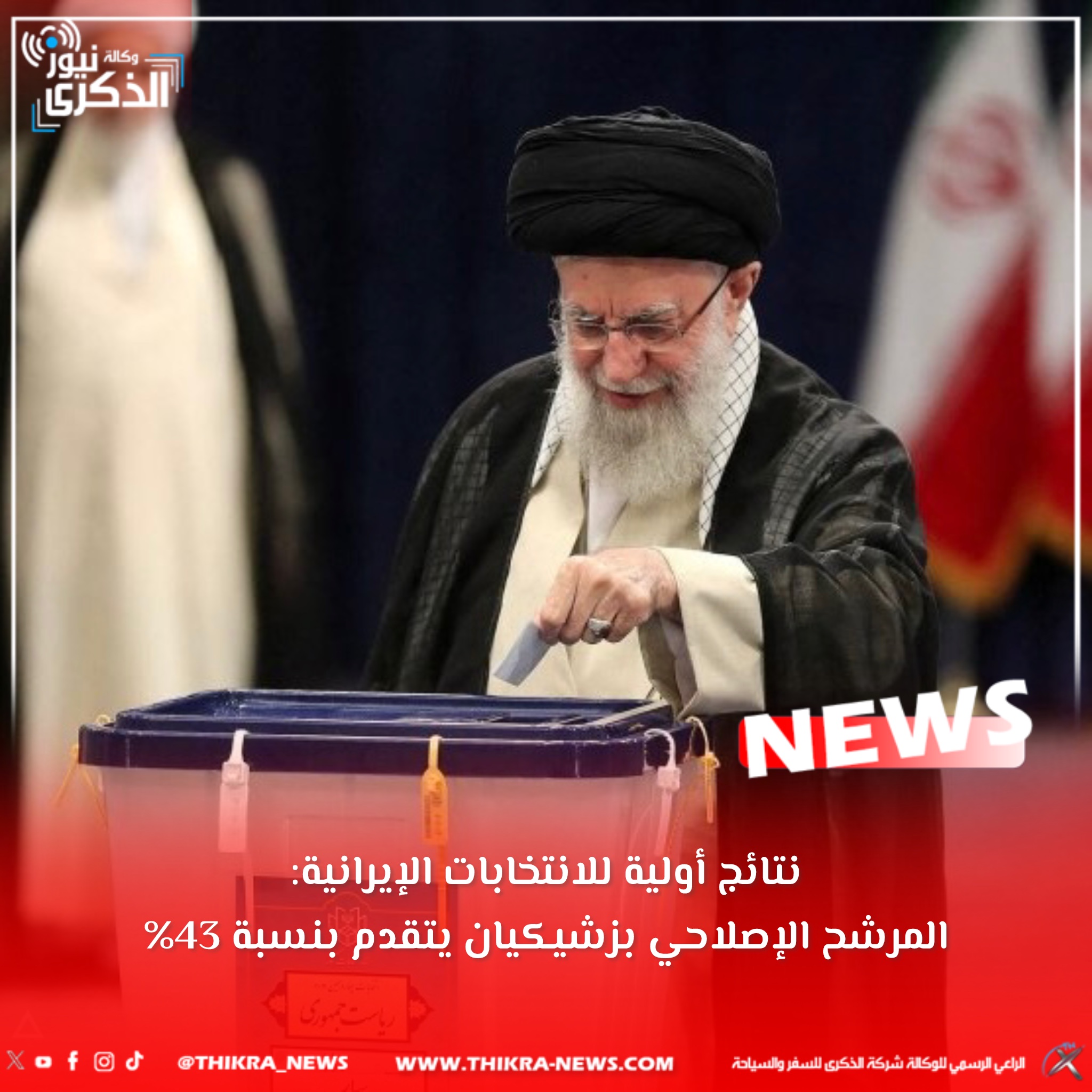 نتائج أولية للانتخابات الإيرانية: المرشح الإصلاحي بزشيكيان يتقدم بنسبة 43%