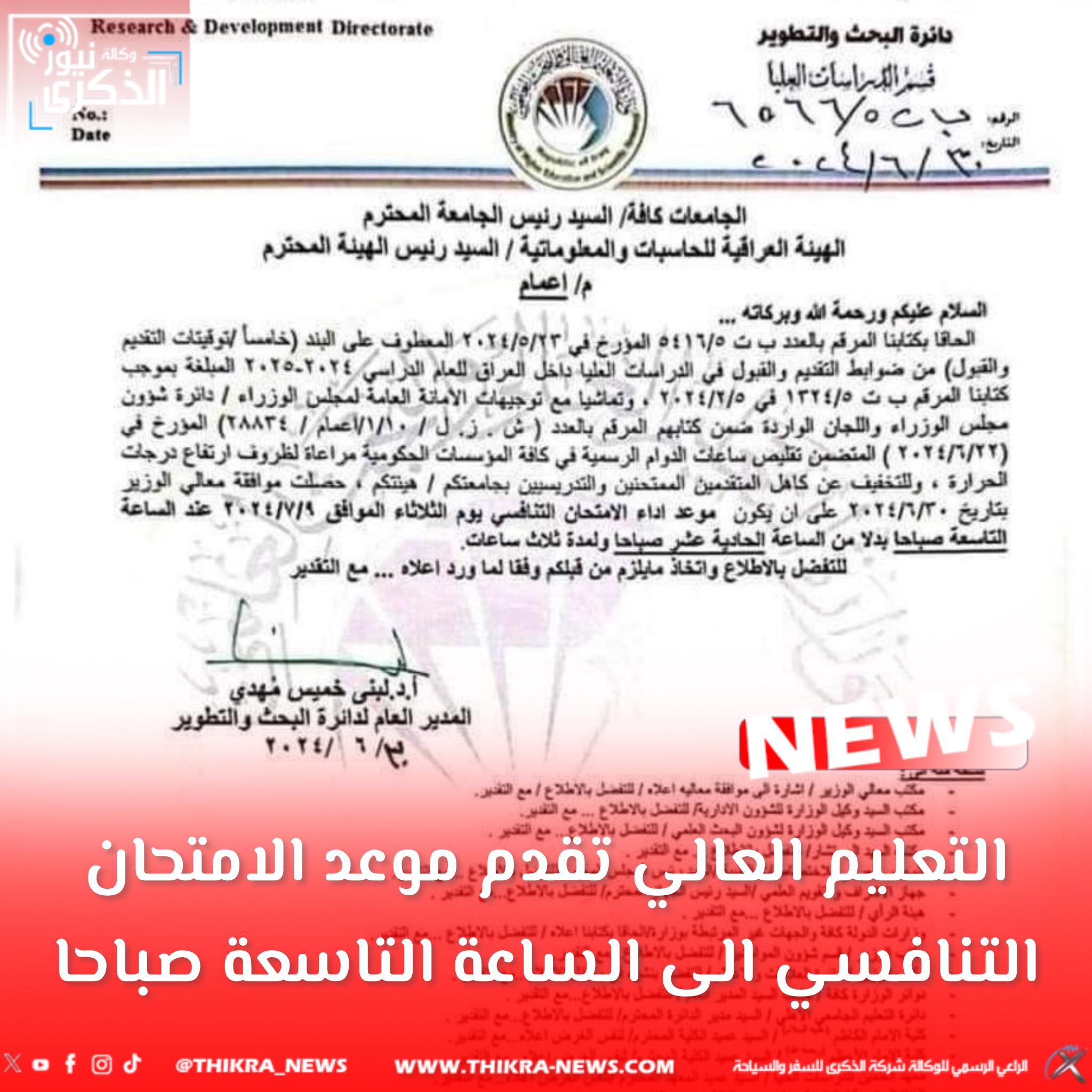 التعليم العالي تقدم موعد الامتحان التنافسي الى الساعة التاسعة صباحا