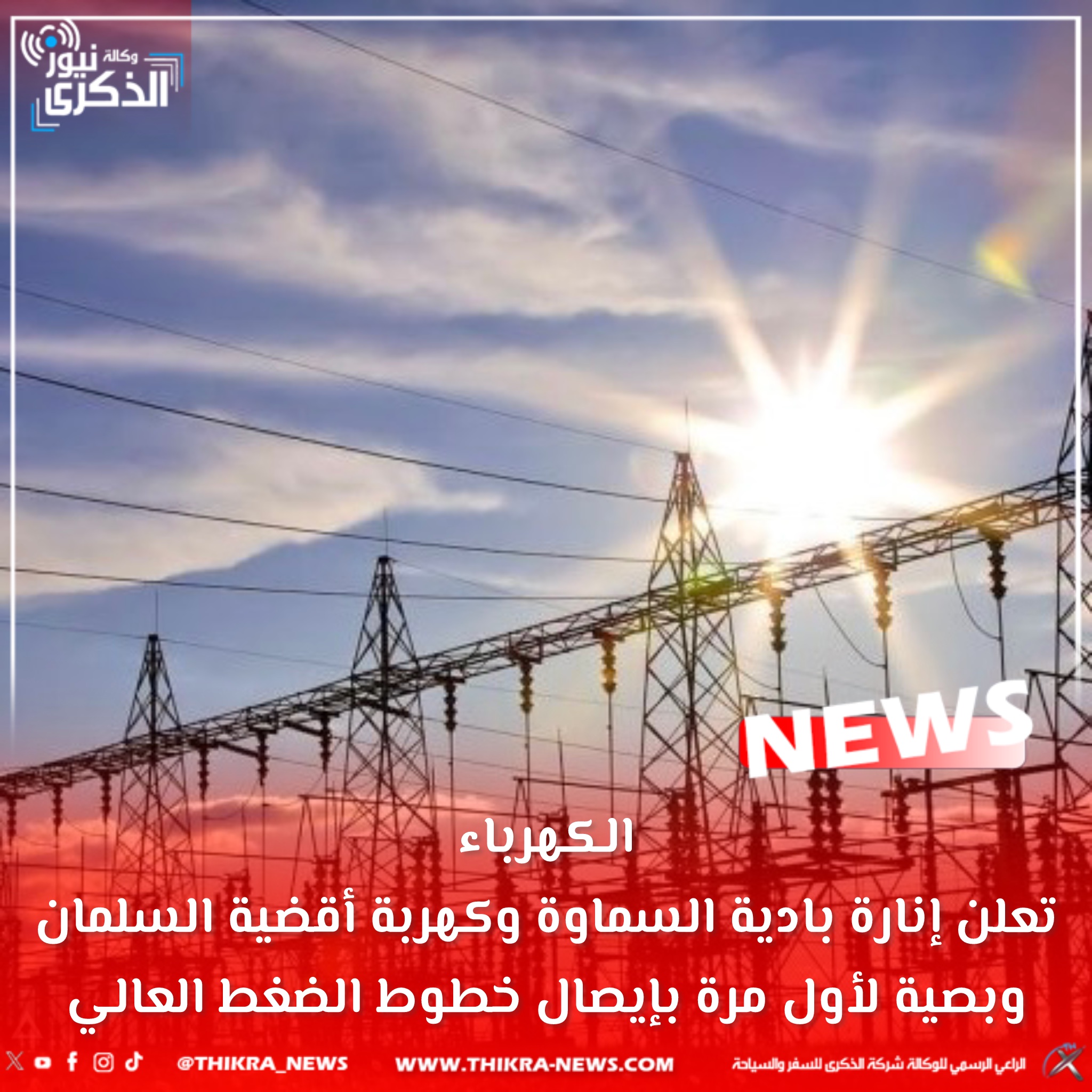 #وزارة_الكهرباء تعلن إنارة بادية السماوة وكهربة أقضية السلمان وبصية لأول مرة بإيصال خطوط الضغط العالي