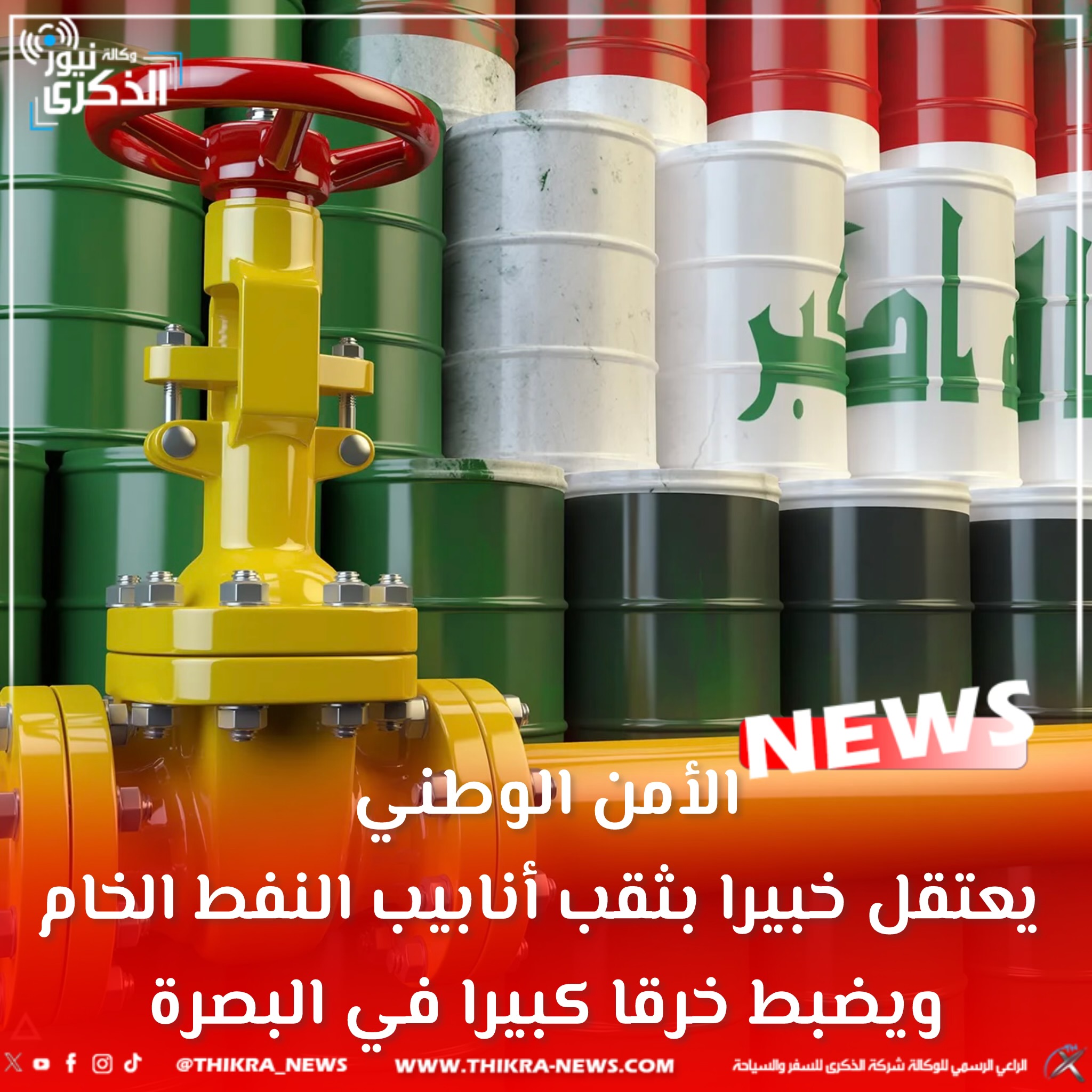 الأمن الوطني يعتقل خبيرا بثقب أنابيب النفط الخام ويضبط خرقا كبيرا في البصرة