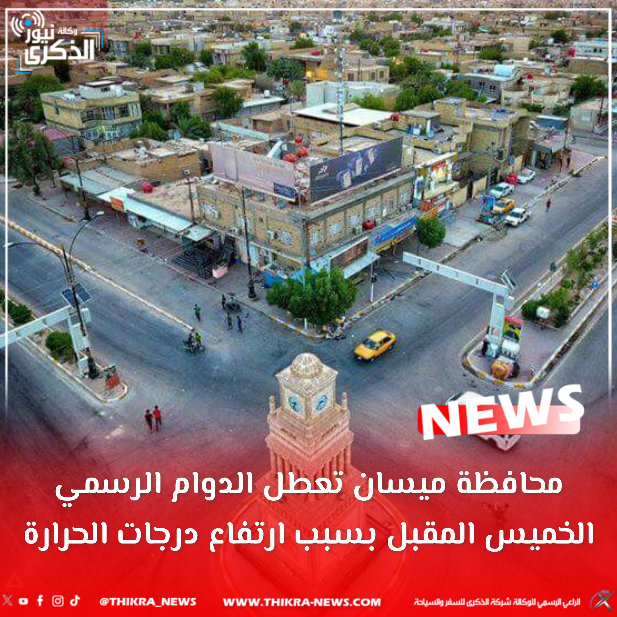 محافظة ميسان تعطل الدوام الرسمي الخميس المقبل بسبب ارتفاع درجات الحرارة