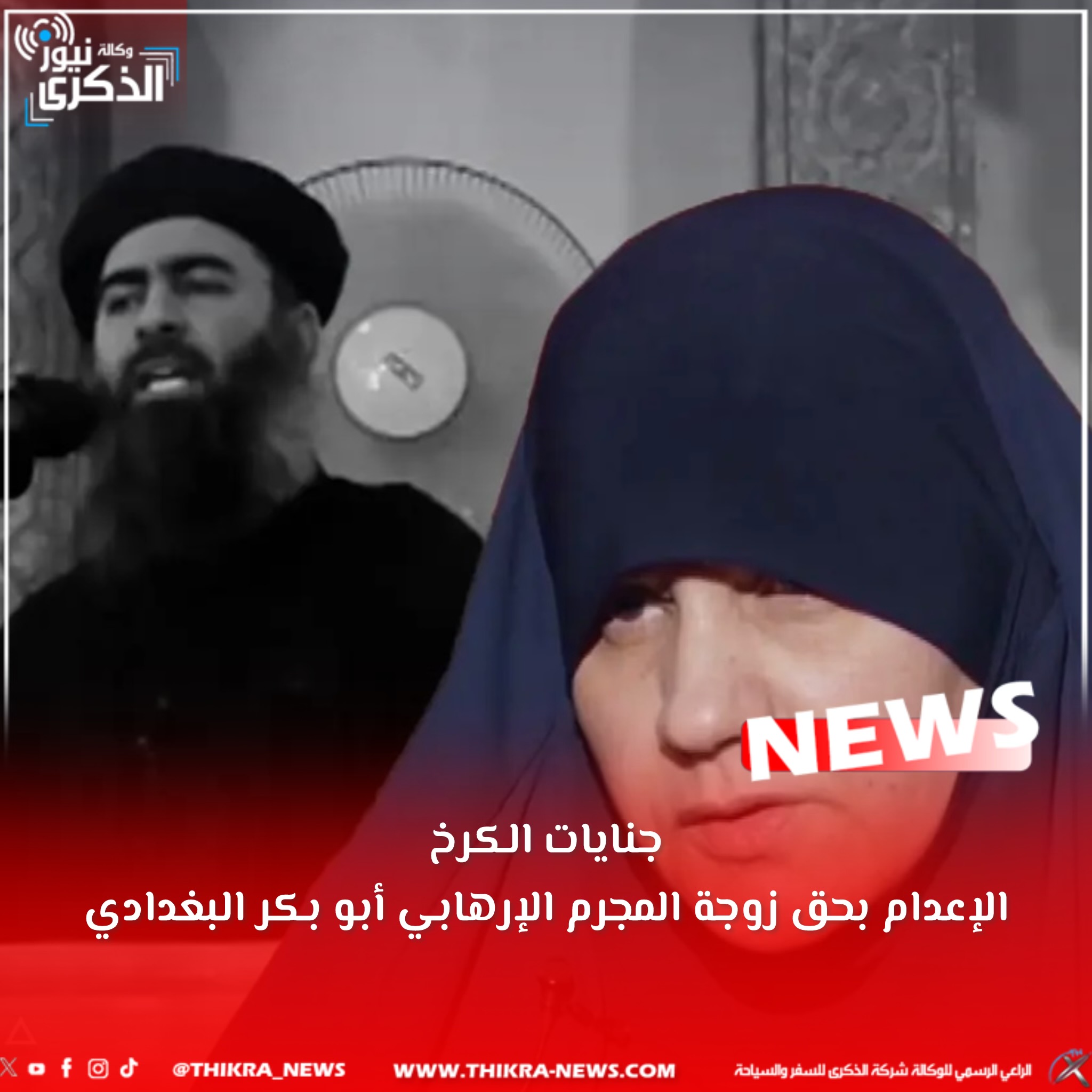جنايات الكرخ: الإعدام بحق زوجة المجرم الإرهابي أبو بكر البغدادي