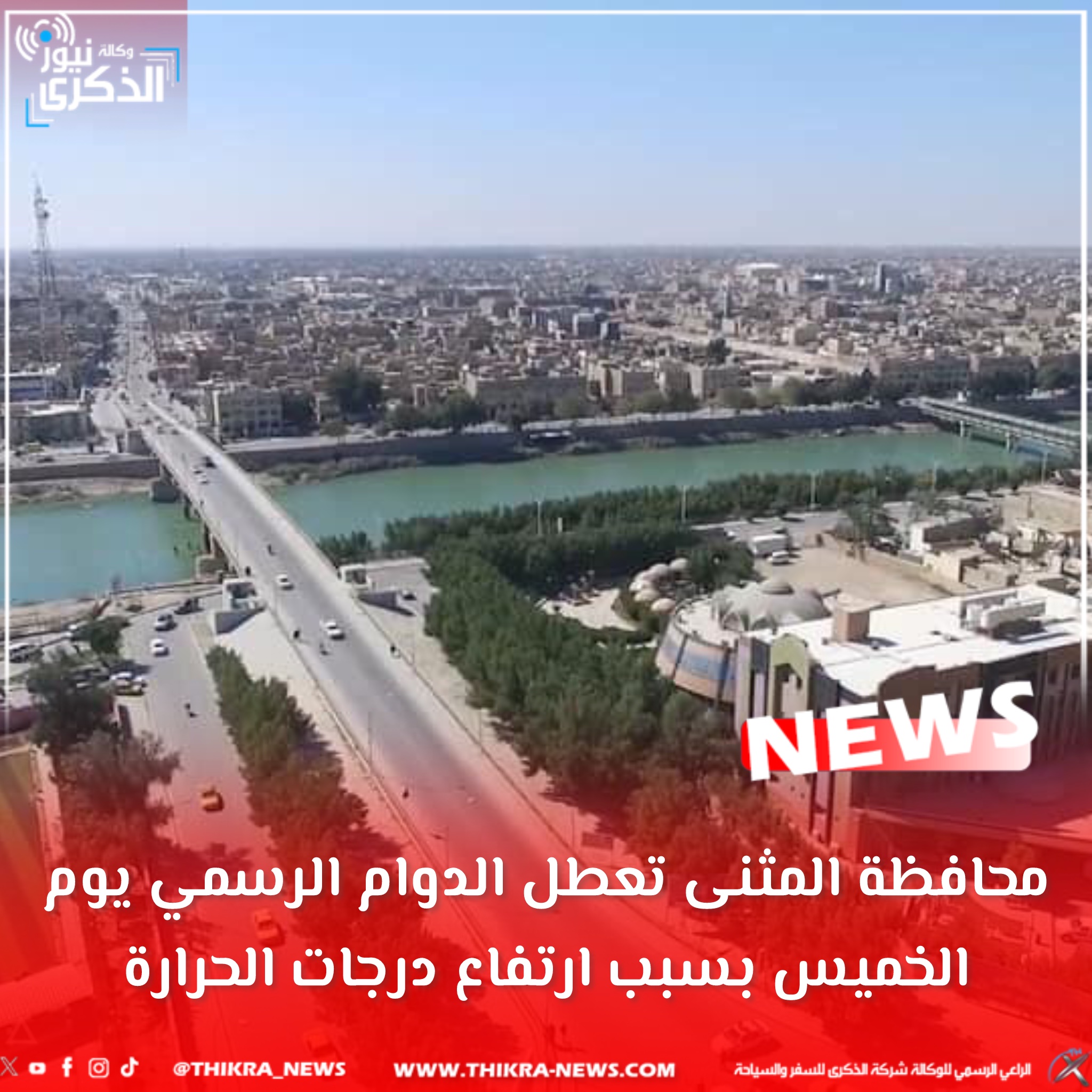 محافظة المثنى تعطل الدوام الرسمي يوم الخميس بسبب ارتفاع درجات الحرارة