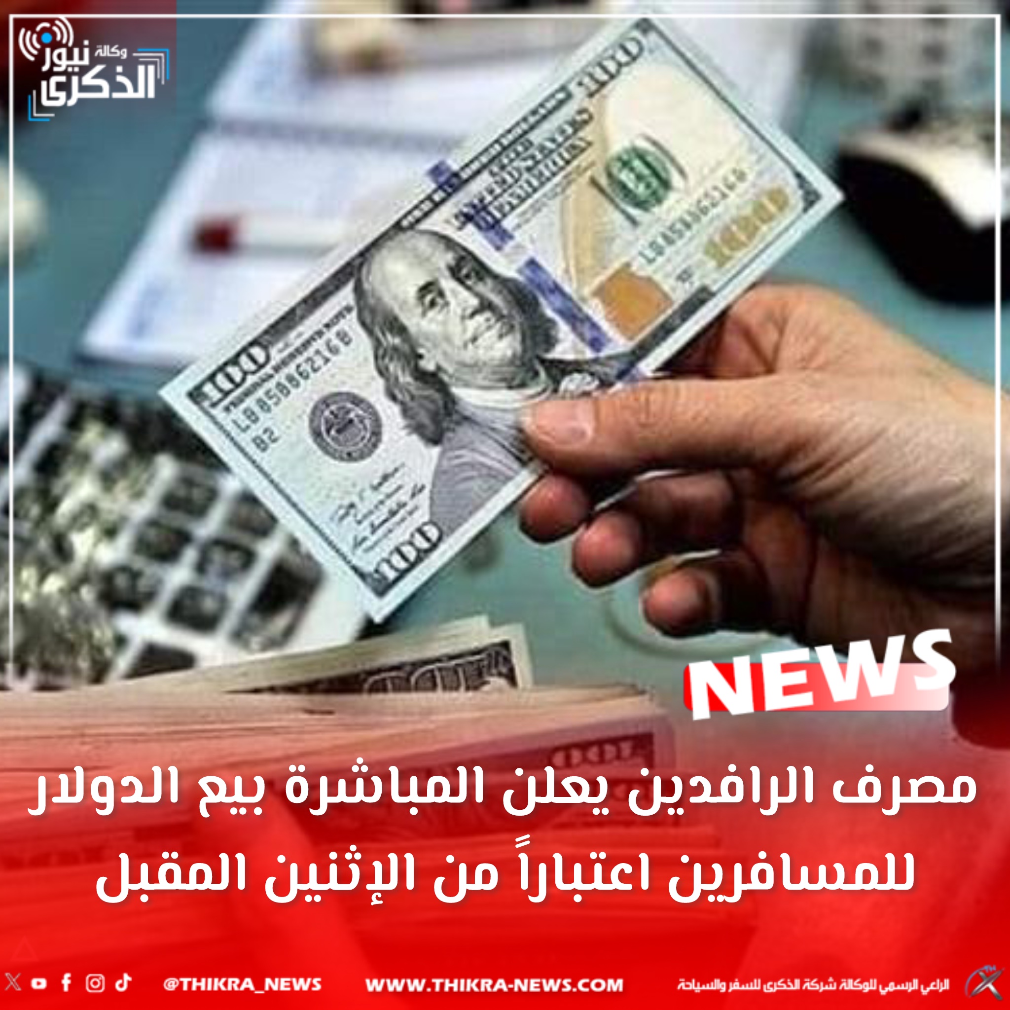 مصرف الرافدين يعلن المباشرة بيع الدولار للمسافرين اعتباراً من الإثنين المقبل