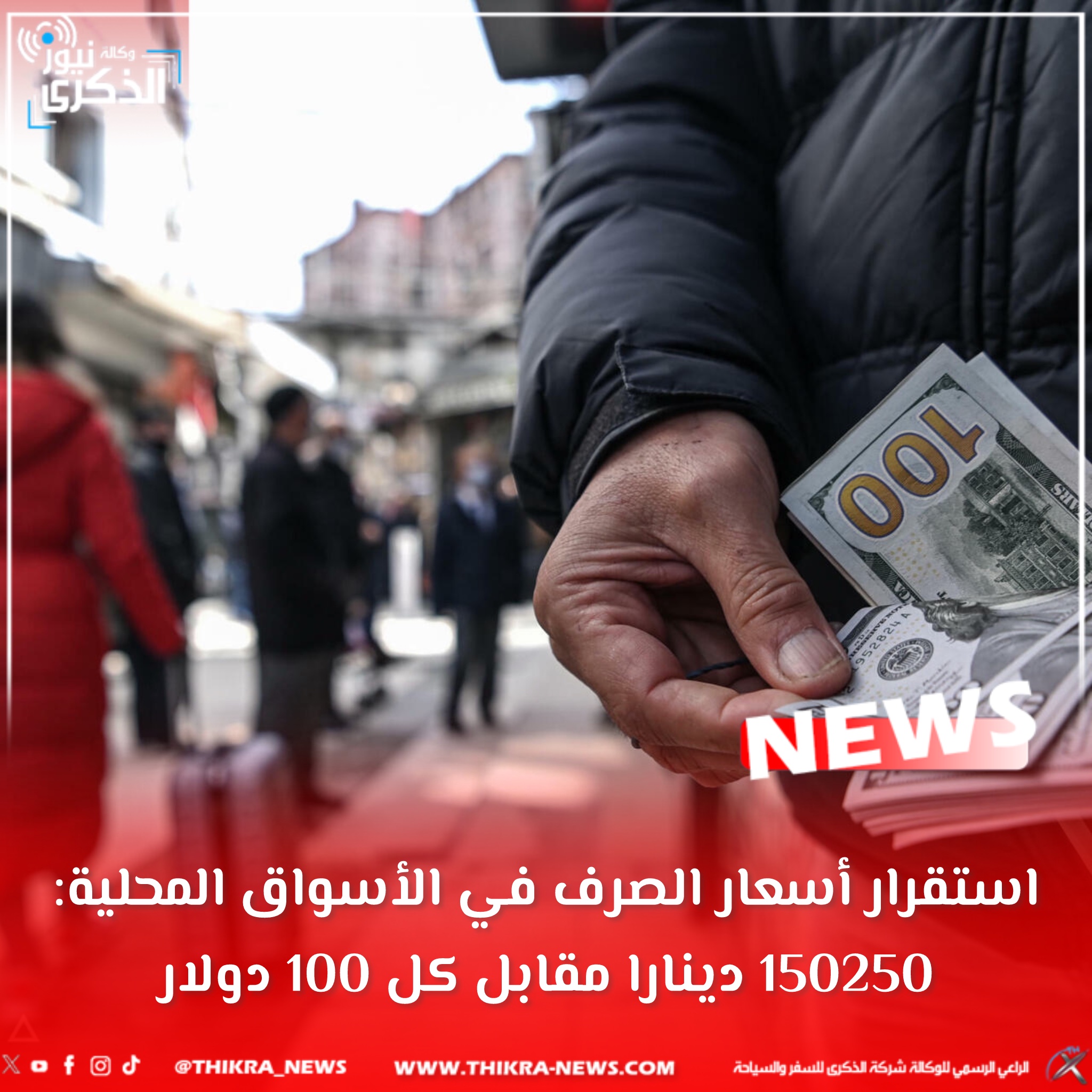 استقرار أسعار الصرف في الأسواق المحلية: 150250 دينارا مقابل كل 100 دولار