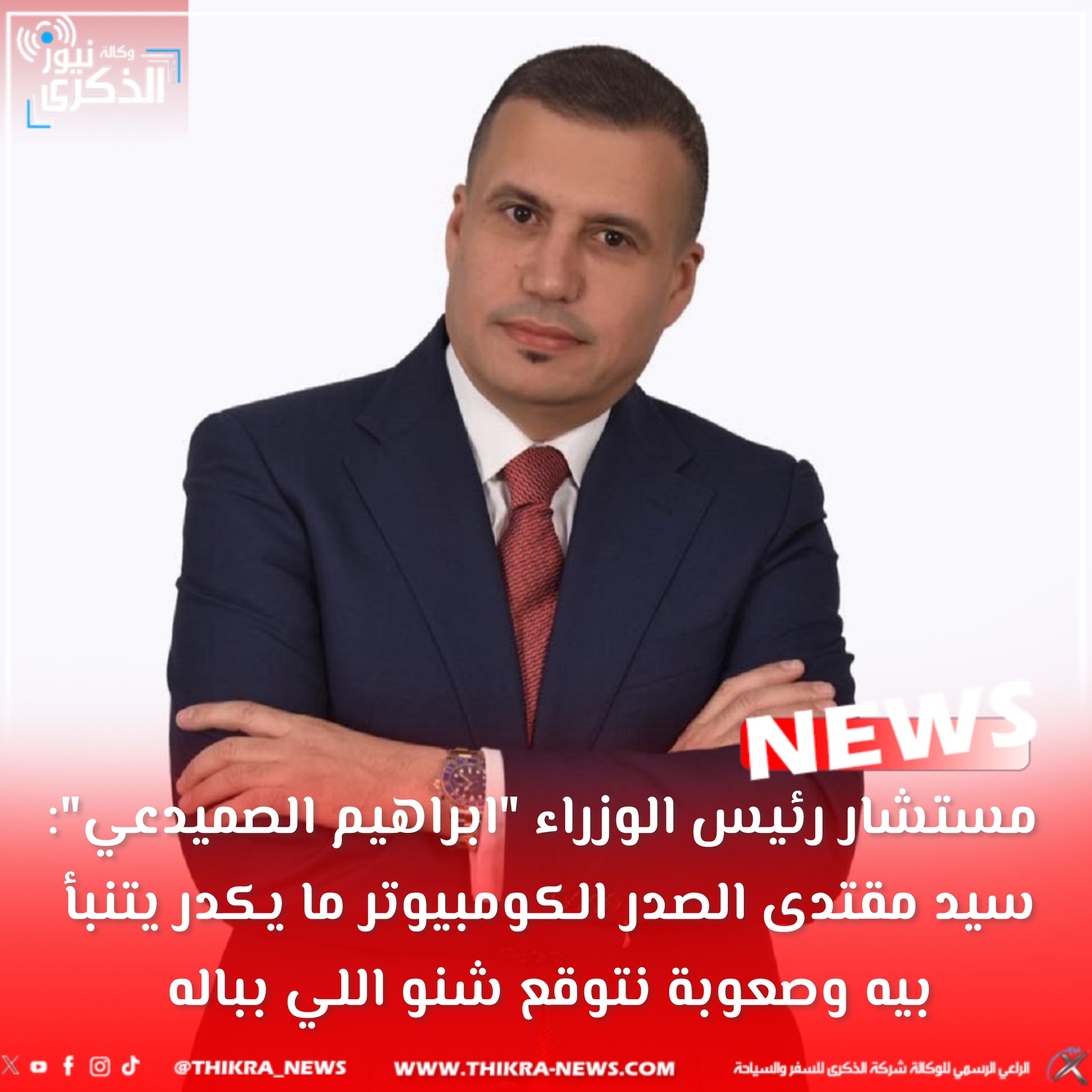 مستشار رئيس الوزراء “ابراهيم الصميدعي”: سيد مقتدى الصدر الكومبيوتر ما يكدر يتنبأ بيه وصعوبة نتوقع شنو اللي بباله