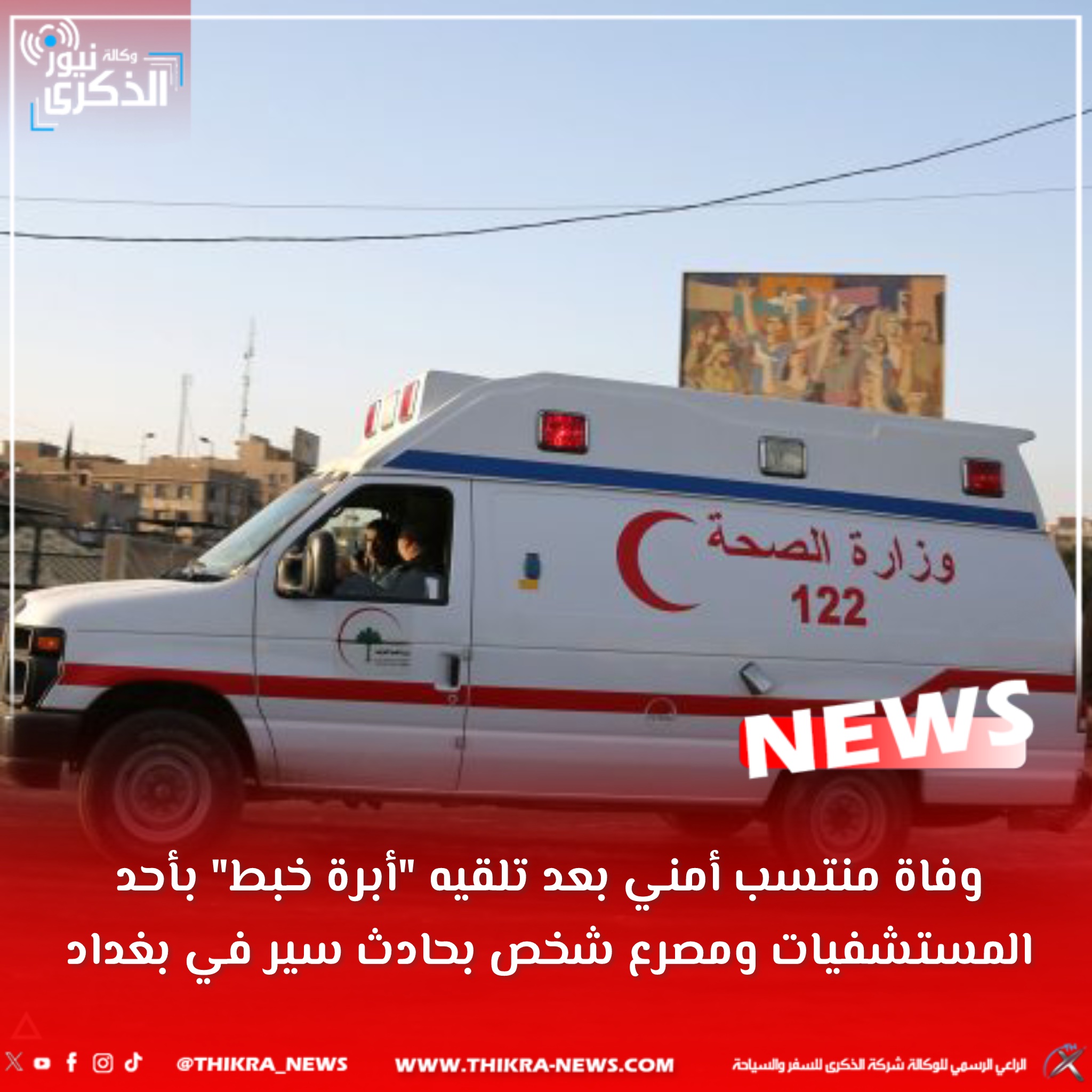 وفاة منتسب أمني بعد تلقيه “أبرة خبط” بأحد المستشفيات ومصرع شخص بحادث سير في بغداد