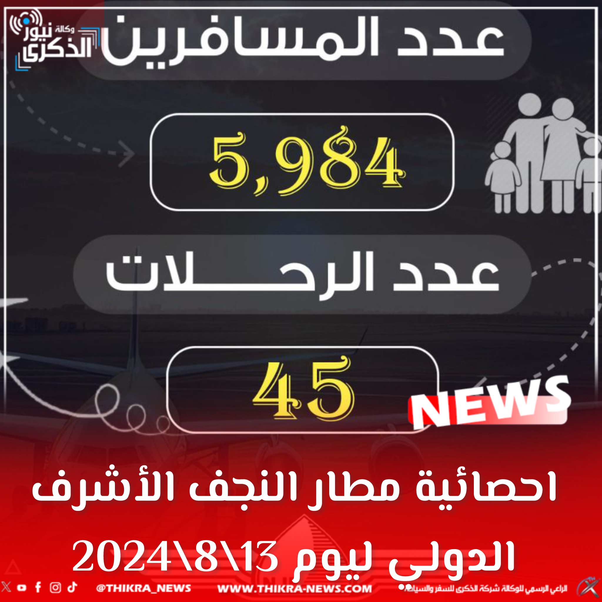 احصائية مطار النجف الأشرف الدولي ليوم 13\8\2024