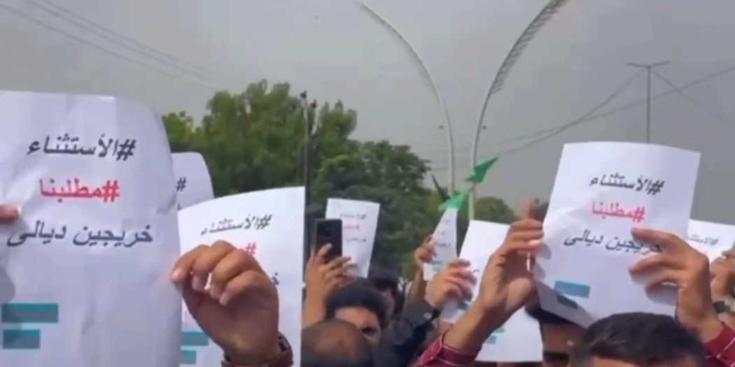 وقد فتح قرار رئيس الحكومة محمد شياع السوداني باستثناء عدد من الخريجين في محافظة ذي قار بابًا جديدًا للاحتجاج في ذي قار وبقية المحافظات.