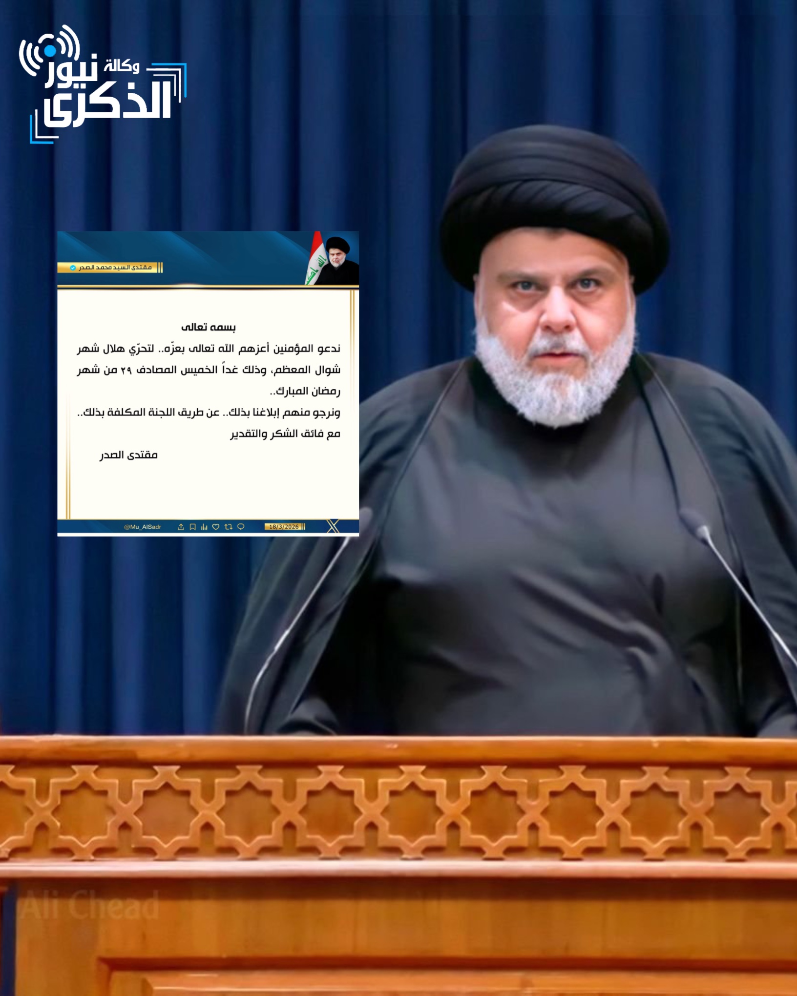 ونشر الصدر تغريدة عبر منصة (X) دعا فيها المؤمنين للتحري عن الهلال