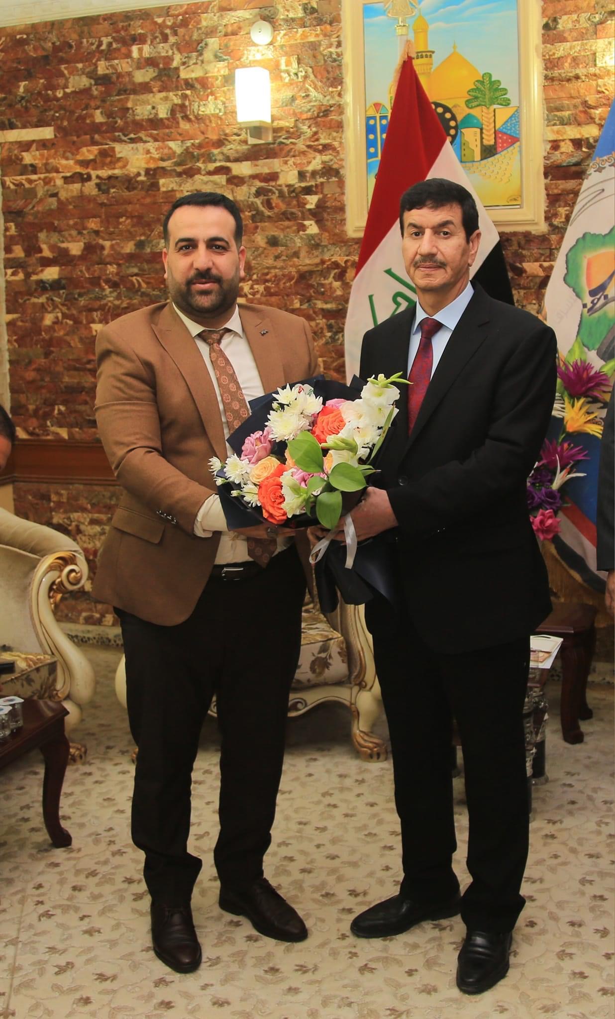 حيث قدم الساعدي التهاني والتبريكات بمناسبة تسنم د.حسين العيساوي رئاسة مجلس المحافظة متمنيا له التوفيق في عمله ولكافة السادة اعضاء المجلس الجديد.
