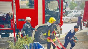 الغرفة تحتوي على مادة “الساندويش بنل ” و عدد الفرق المشاركة هي ثلاث فرق استطاعت إخماد الحريق دون خسائر بشرية تذكر .