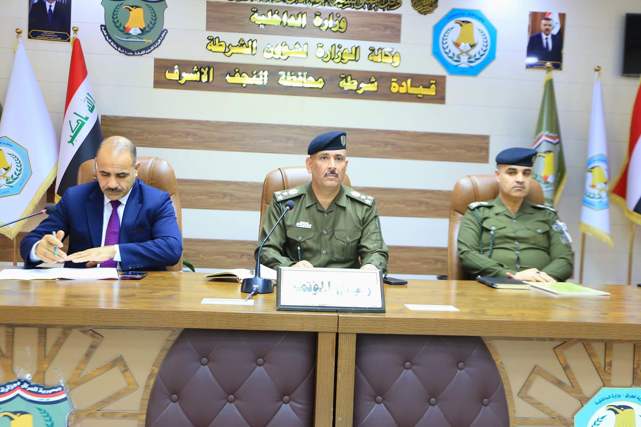 عقدت قيادة شرطة ، محافظة النجف الأشرف ، اجتماع برئاسة نائب قائد الشرطة و بحضور معاون محافظ النجف للشؤون الأمنية ومدراء الأجهزة الأمنية ومدراء المديريات والاقسام لمناقشة الخطة الامنية خاصة بالزيارة الشعبانية .