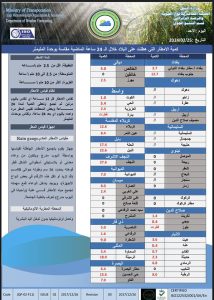 اعلنت هيئة الانواء الجوية حالة الطقس في البلاد، مؤكدة استمرار انخفاض درجات الحرارة مع تشكل للضباب خاصة في فترات الصباح .